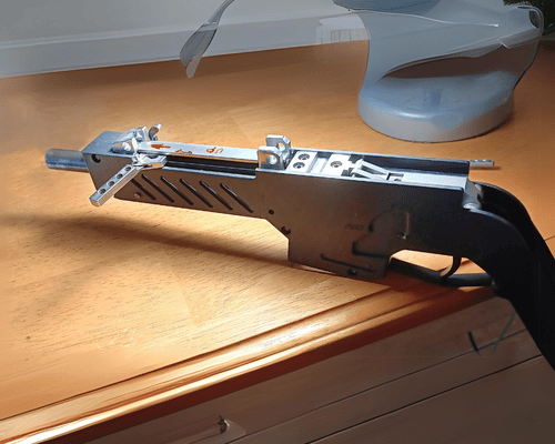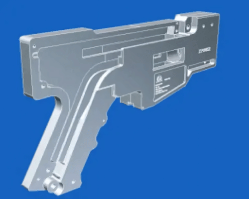 THE ABT RECEIVERS ARE CONCEIVED TO BE MANUFACTURED BY MILLING FLAT 7075 T6 PLATES TO OBTAIN MATING CLAM SHELL ELEMENTS (LEFT AND RIGHT), INTERIOR AND EXTERIOR, FOR THE UPPER AND LOWER RECEIVER, IN SMALL BED CNC MILLS. WHEN THE INTERIOR MACHINING IS FINISHED, THEN TURN THE PLATE, AND THEN MACHINE THE EXTERIOR CORRESPONDING SIDE. THE COMPLETE RECEIVER WILL BE FINISHED IN ONE HOLDING SET-UP OF THE PLATE, AND ONE TURN OF THE PLATE. THIS CONCEPTION IS EXTREMELY SIGNIFICANT WHEN EVALUATING THE RETURN OVER THE INVESTMENT ON MACHINERY. XYZ MILLS COST A FRACTION (1/8) WHEN COMPARED WITH THE MILLING MACHINE COST REQUIRED TO MAKE AR-15 RIFLES.