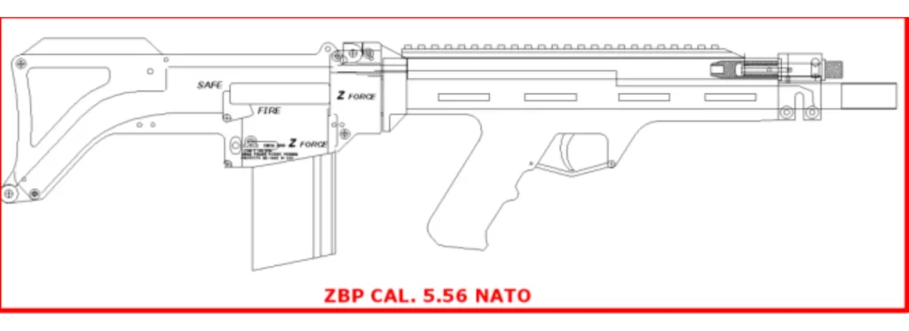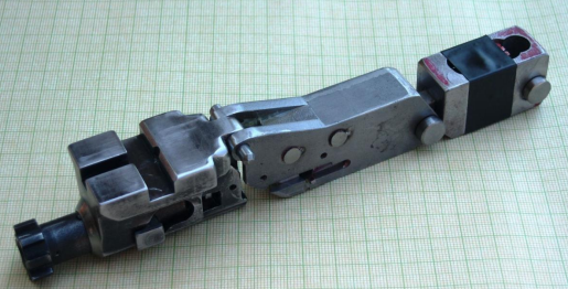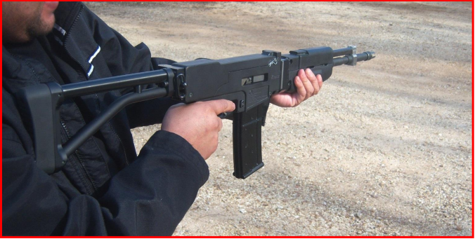 The ABT mechanical system is an “on purpose” heavy mechanism Articulated Bolt Train (ABT) positioned internally to the receiver and reciprocating oscillating above the top of the shooter’s grabbing hand, which in the most forward position is in the horizontal posture, closing the breech, and when cycling, moves in aproximately 40 milliseconds dives reciprocally through the handle tunnel describing a negative angle of about minus 55 degrees generating a dual powerful angular moment ( gyroscopic effect ) along the XY plane which is precisely suffering a “ Barrel Torque “ reaction effect caused by twisting of the bullet at the same time, along the X axis of the Barrel. This serves to counter- balance the nocive, cumulative, twist tendency when whet firing in full automatic mode. The magnitude of the angular moment can be, by design, Pre-determined, by using the appropriate mass parameter of “diving”, “through the tunnel” part. The above is valuable contribution the resolving, in part, the disturbing barrel torque problem.