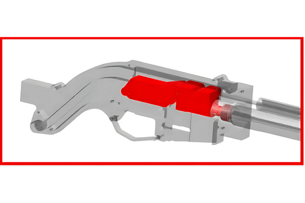 The modular Trigger Group works in coordination with the independent Firing mechanism housed inside the Articulated Bolt Train.